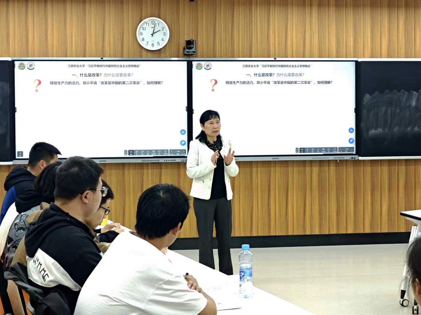 4月7日下午,“习近平新时代中国特色社会主义思想概论”课程第三讲开讲。校党委常委、统战部部长周红燕与马克思主义学院傅琼教授共同讲授“全面深化改革开放”专题。