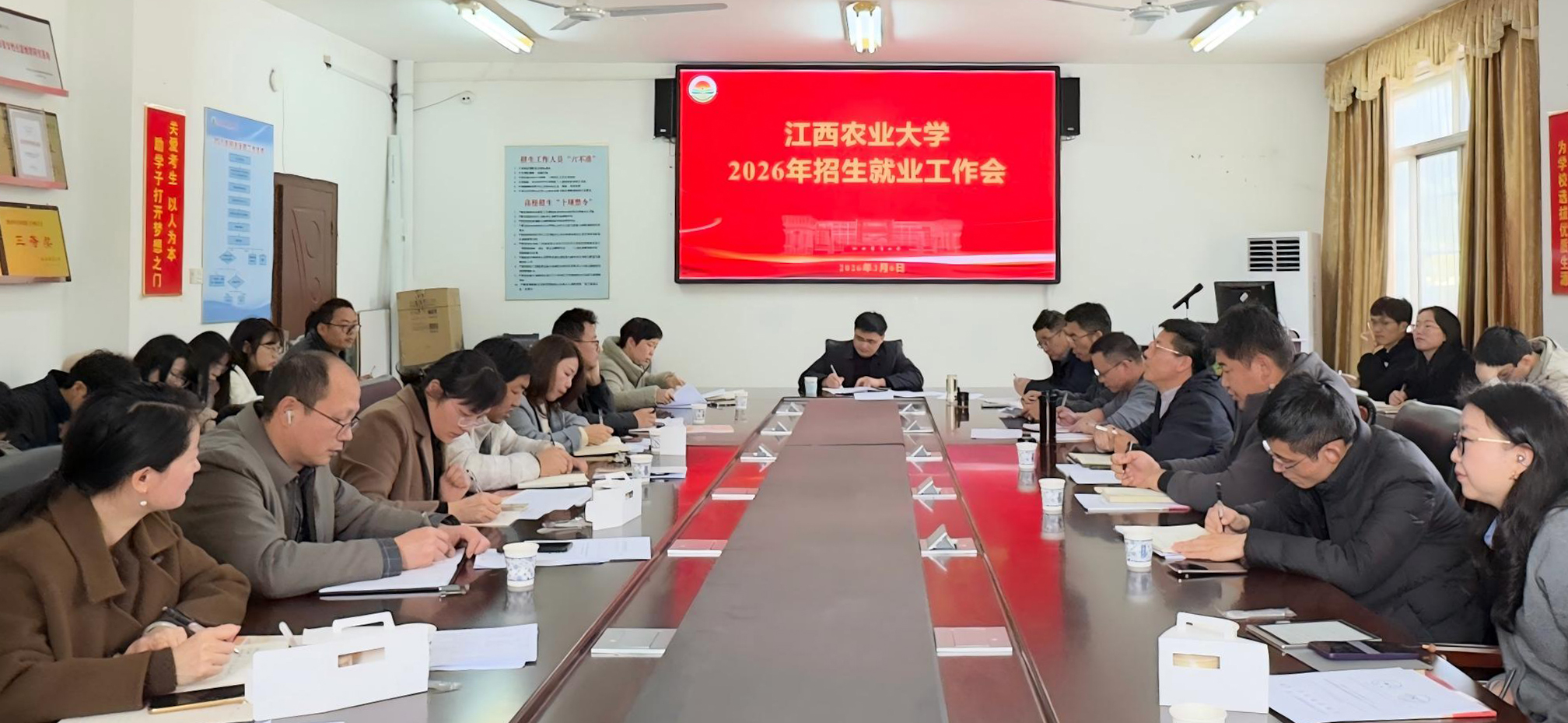 会上,招就处通报了各学院2026届毕业生当前就业签约、访企拓岗、考研上线等总体情况,分析当前就业形势与面临挑战,对近期相关就业工作进行了布置,并对学校2026年本科招生计划报送工作进行了说明,学院代表动物科学技术学院、国土资源与环境学院分别就考研升学调剂,就业工作前置细化抓实进行了经验交流发言。