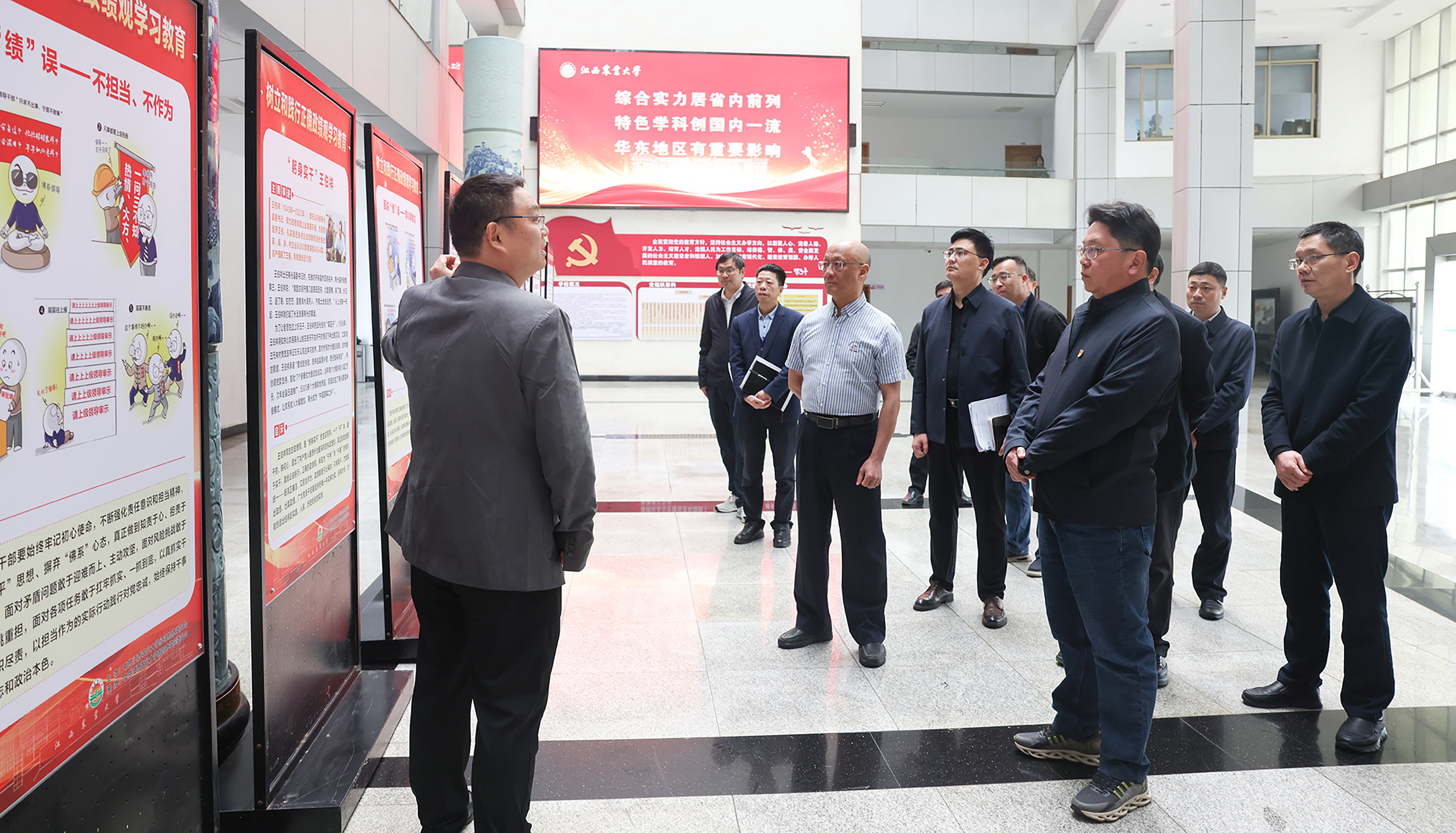 为进一步推进树立和践行正确政绩观学习教育走深走实,引导广大党员干部把正确政绩观贯穿人才培养、教育教学、科研创新、管理服务全过程,近日,由校纪委主办、商学院党委承办的“树立和践行正确政绩观学习教育”主题展在校行政楼大厅开展。3月30日上午,校党政领导班子成员集体参观本次主题展。